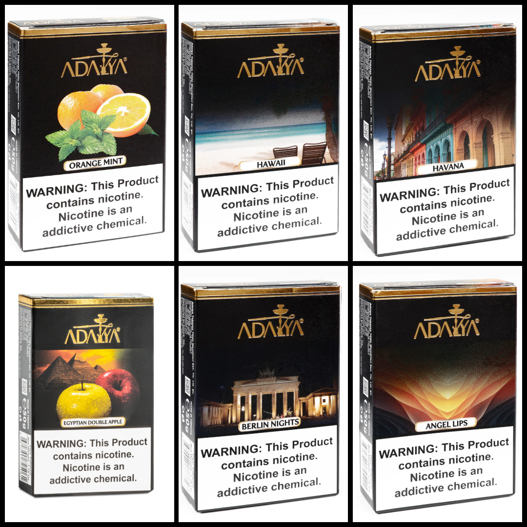 The Adalya Hookah Flavors 50g (10ct) offer a premium smoking experience with a variety of unique and bold flavors. Each carton contains 10 packs, with 50 grams per pack, totaling 500 grams of freshly cut, golden leaf tobacco.