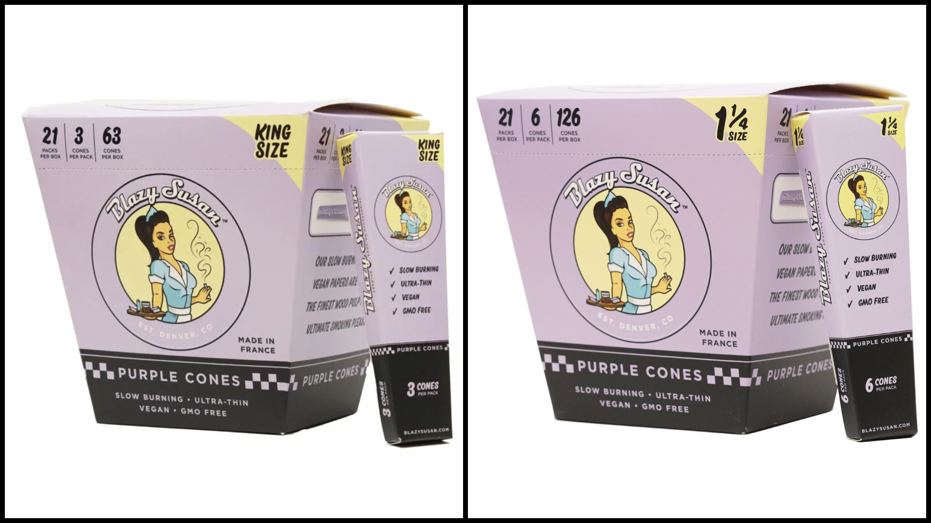 The Blazy Susan Purple Cones 21ct Dis. offer a premium smoking experience with high-quality, ultra-thin purple cones. These pre-rolled cones are designed for a smooth, clean burn, and are perfect for those who want a stylish and satisfying smoke.