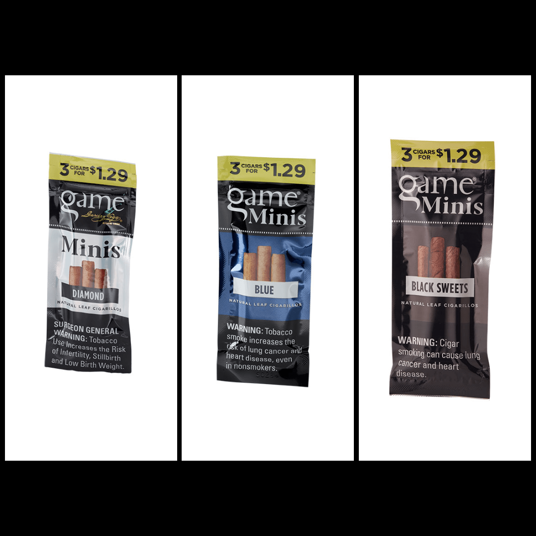 Garcia y Vega’s Game Mini Cigarillos offer a rugged, natural construction with a rich, satisfying taste. Available in enticing flavors like Black Sweet and Diamond, these mini cigarillos deliver a smooth yet bold smoking experience. Wrapped in a fresh-sealed foil sleeve for lasting freshness, Game Mini Cigarillos provide premium flavor at an affordable price.