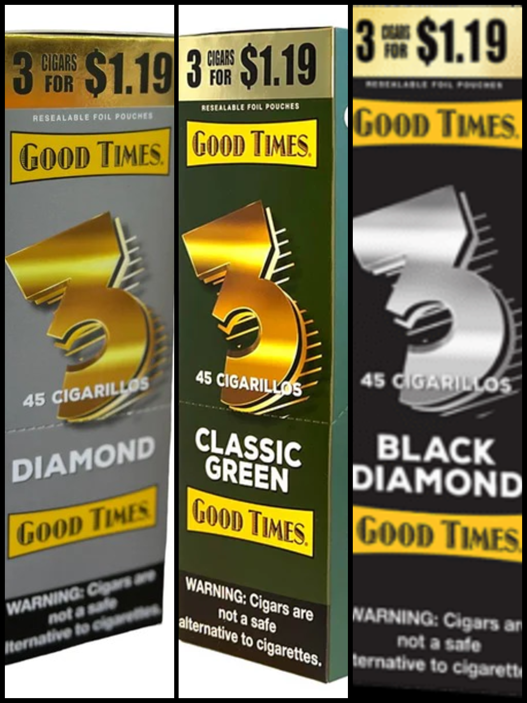 The Good Times 3 for $1.19 Cigarillos offer a budget-friendly option for cigar enthusiasts, providing quality and flavor at an affordable price. Each pack contains three cigarillos, and the pre-priced label indicates a cost of $1.19 per pack.