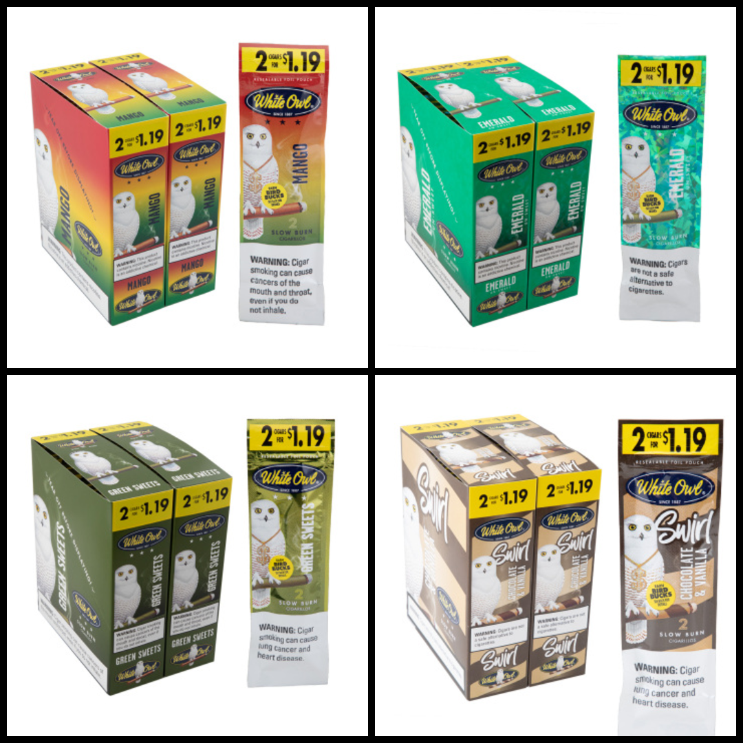 White Owl Cigarillos are crafted with a premium tobacco blend and wrapped in a homogenized leaf to deliver a smooth, flavorful smoke every time. Offered in 2 for $1.19 foil-fresh packs, these cigarillos come in a wide variety of bold, fruity, and classic flavors that cater to all taste preferences.